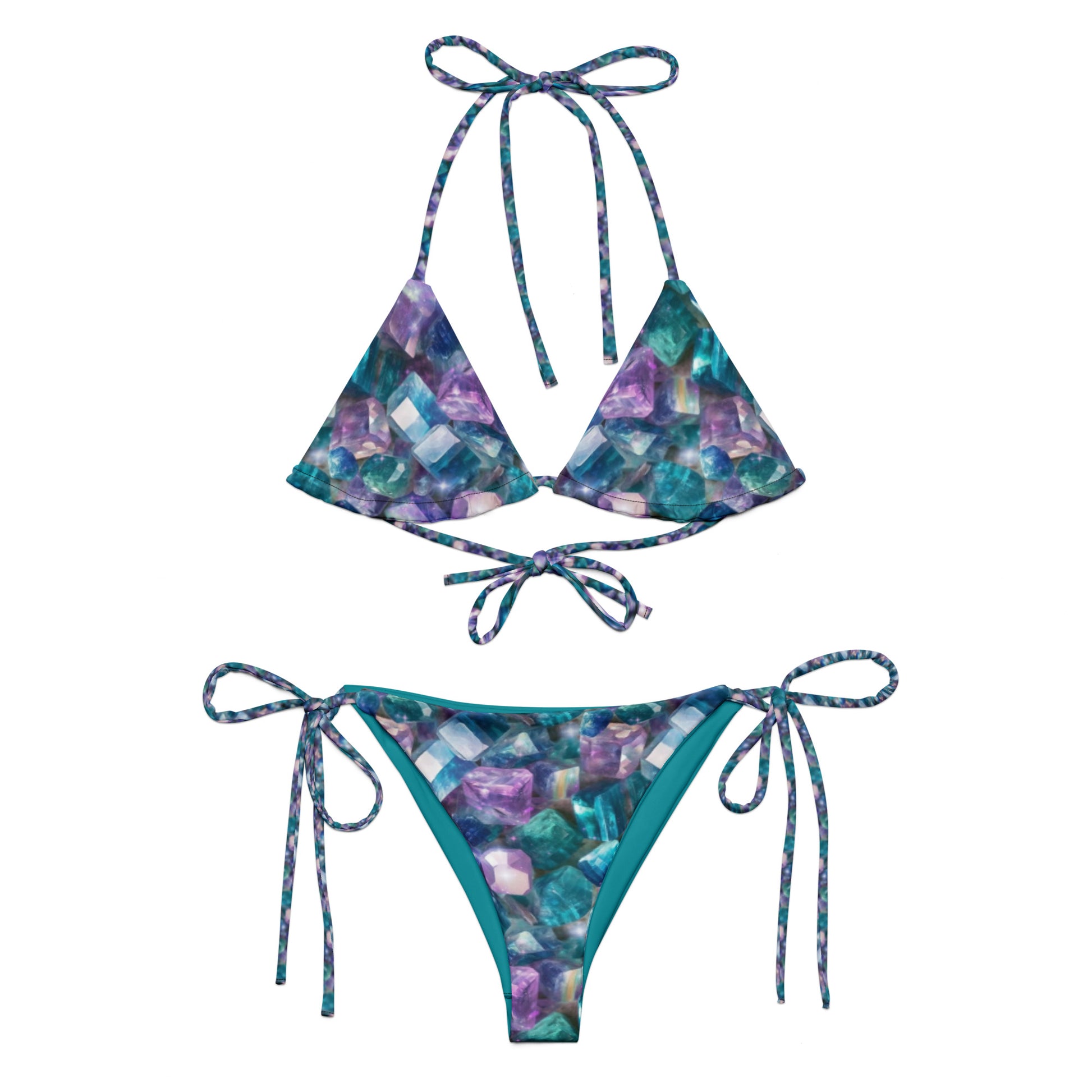 Experience the beauty and meaning of our Recycled String Bikini, where sustainability meets style and where inner harmony meets confident decision-making. Dive into the world of recycled fashion and embrace the power of Rainbow Fluorite. Swim with purpose, swim with confidence.
