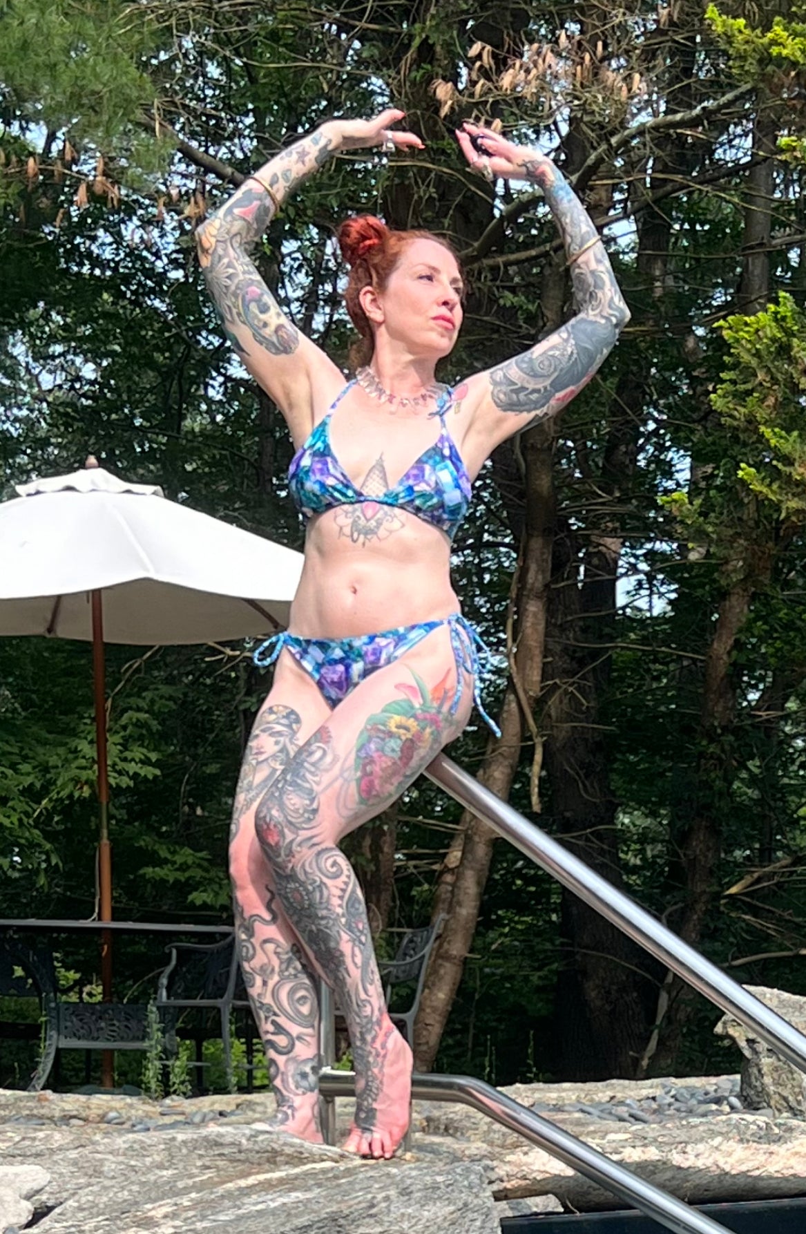 This bikini is more than just a fashionable swimwear choice. Its captivating print features Rainbow Fluorite, a gemstone known for promoting internal harmony. Amidst the chaos and confusion, it brings about a sense of unbridled calmness, allowing you to navigate through life's challenges with ease.