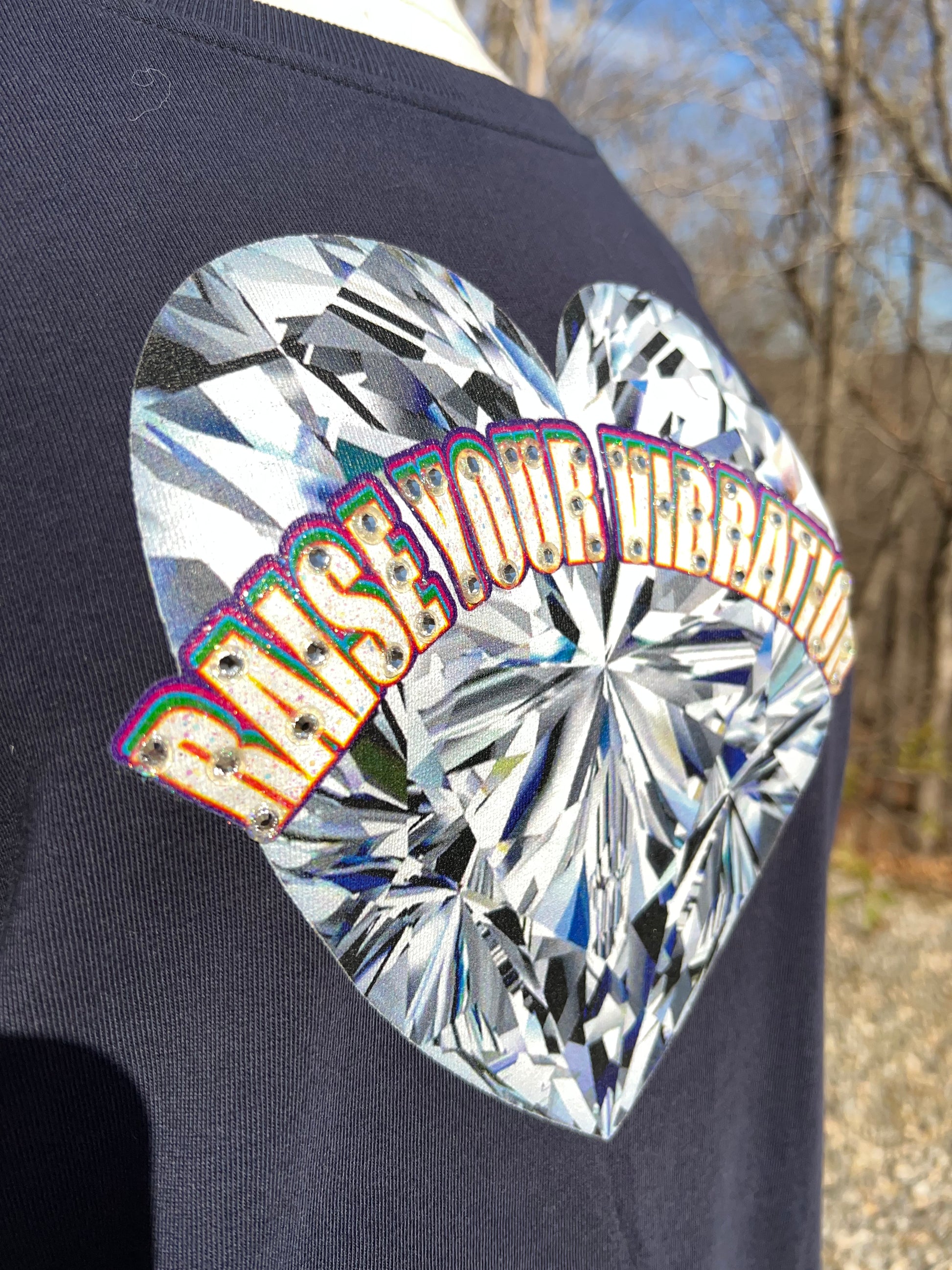 This affirmation “Raise Your Vibration” has LOTS of crystal clear rhinestones with TONS of sparkle and flash! Letters are painted with iridescent special mixed glitter.