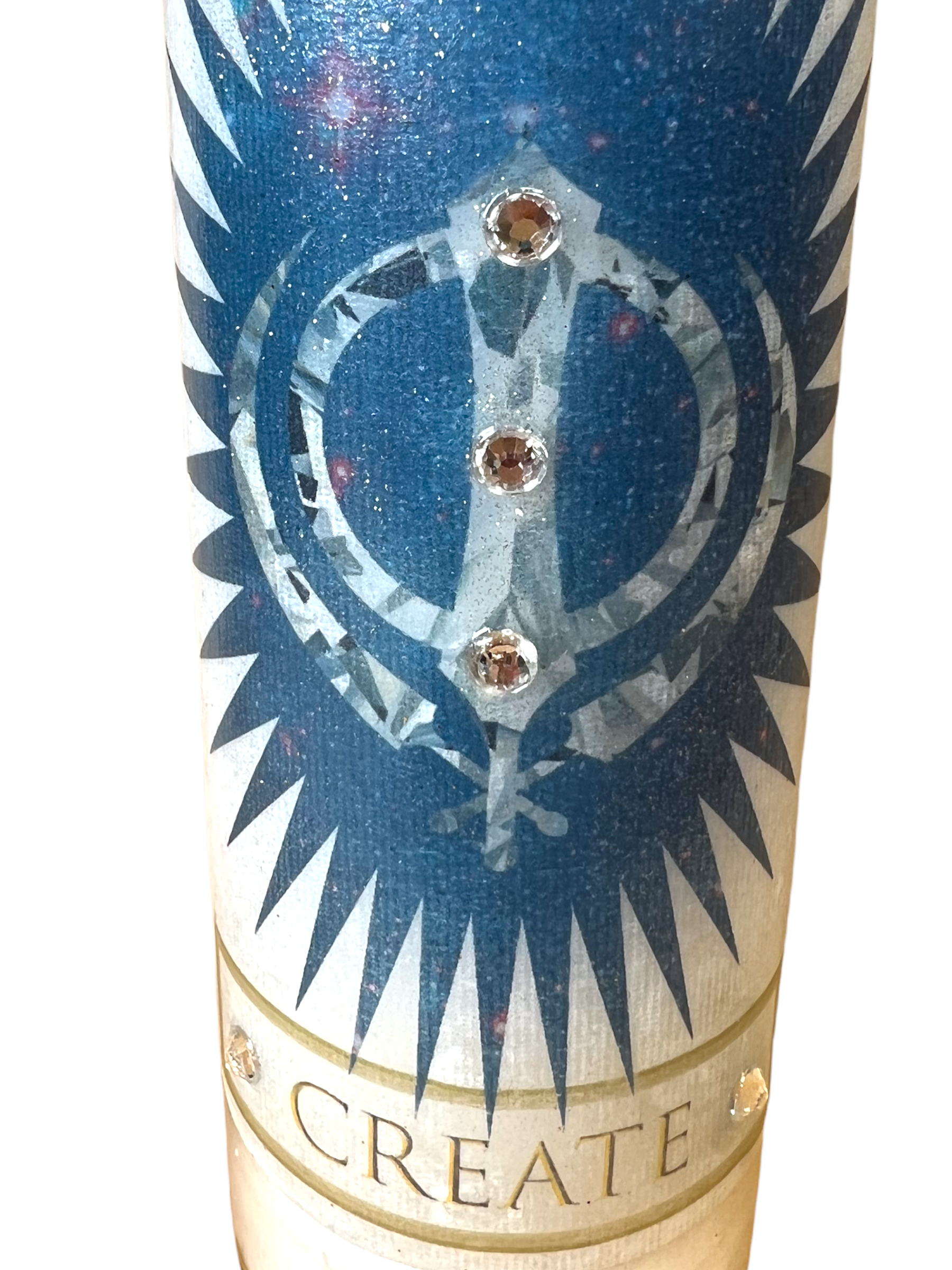 The Adi Shakti symbol made out of a diamond and layered over the universe. Adi Shakti is said to be the divine mother of creation.