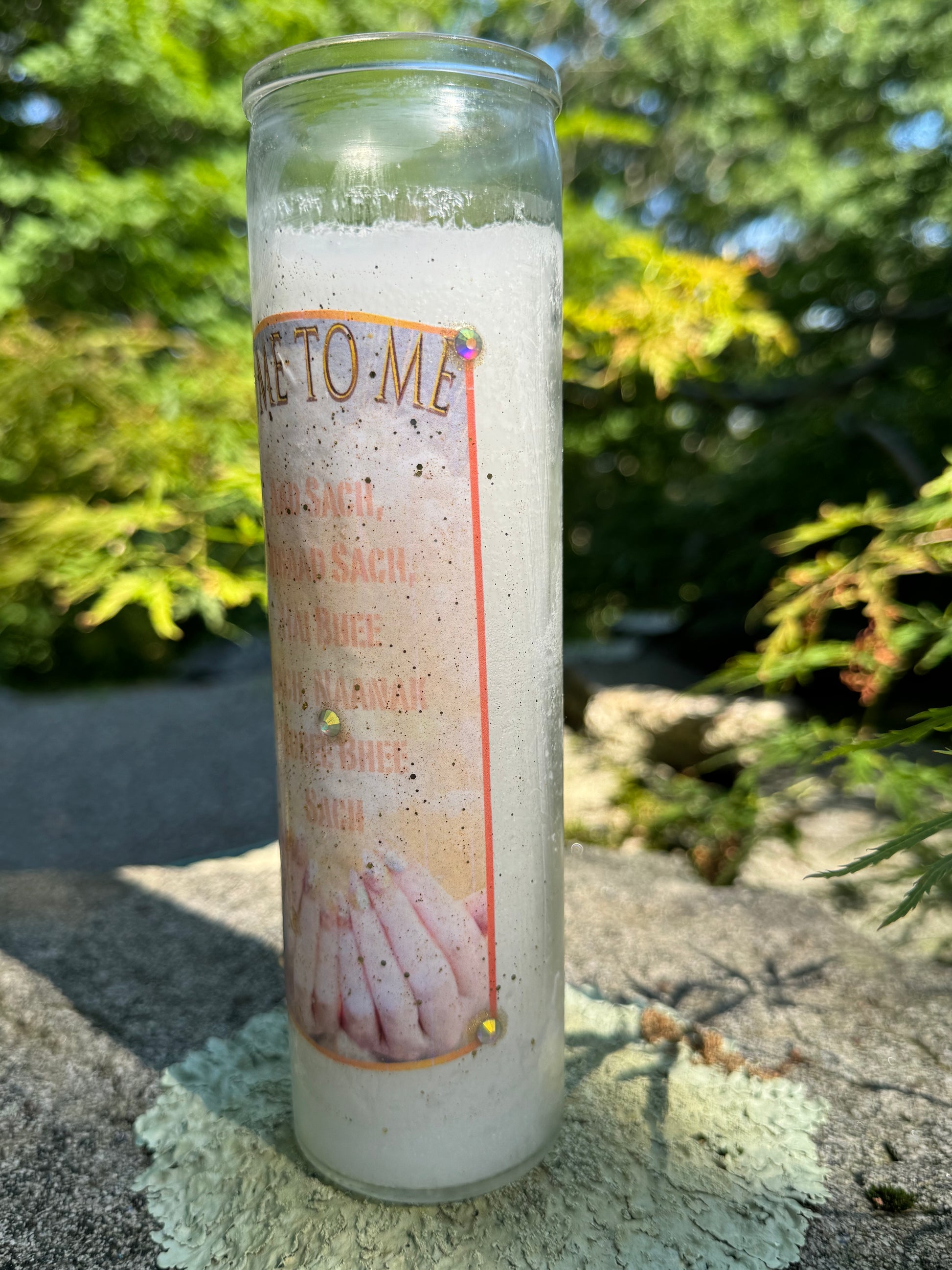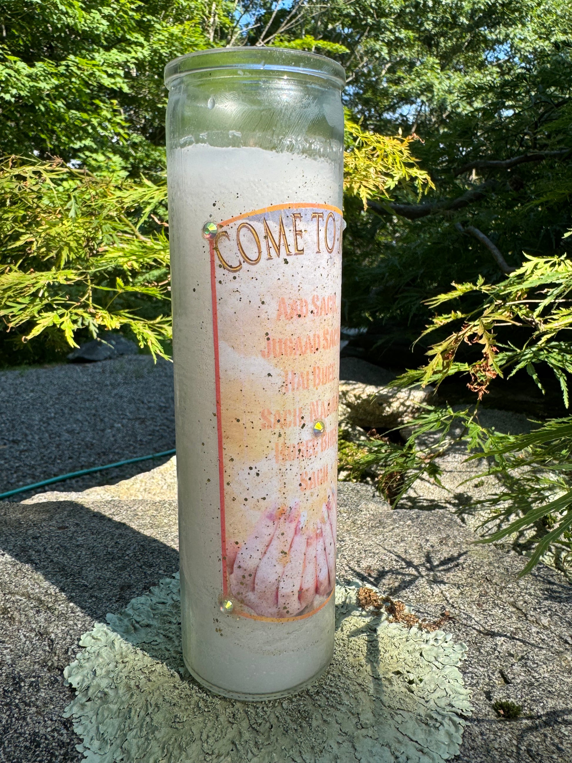 COME TO ME Candle. Brings you what you need. Created chanting the mantra “Aad Sach Jugaad Sach Hai Bhee Sach” If you need something in life, you can recite it, and it will help you to progress, spiritually, worldly and materially.