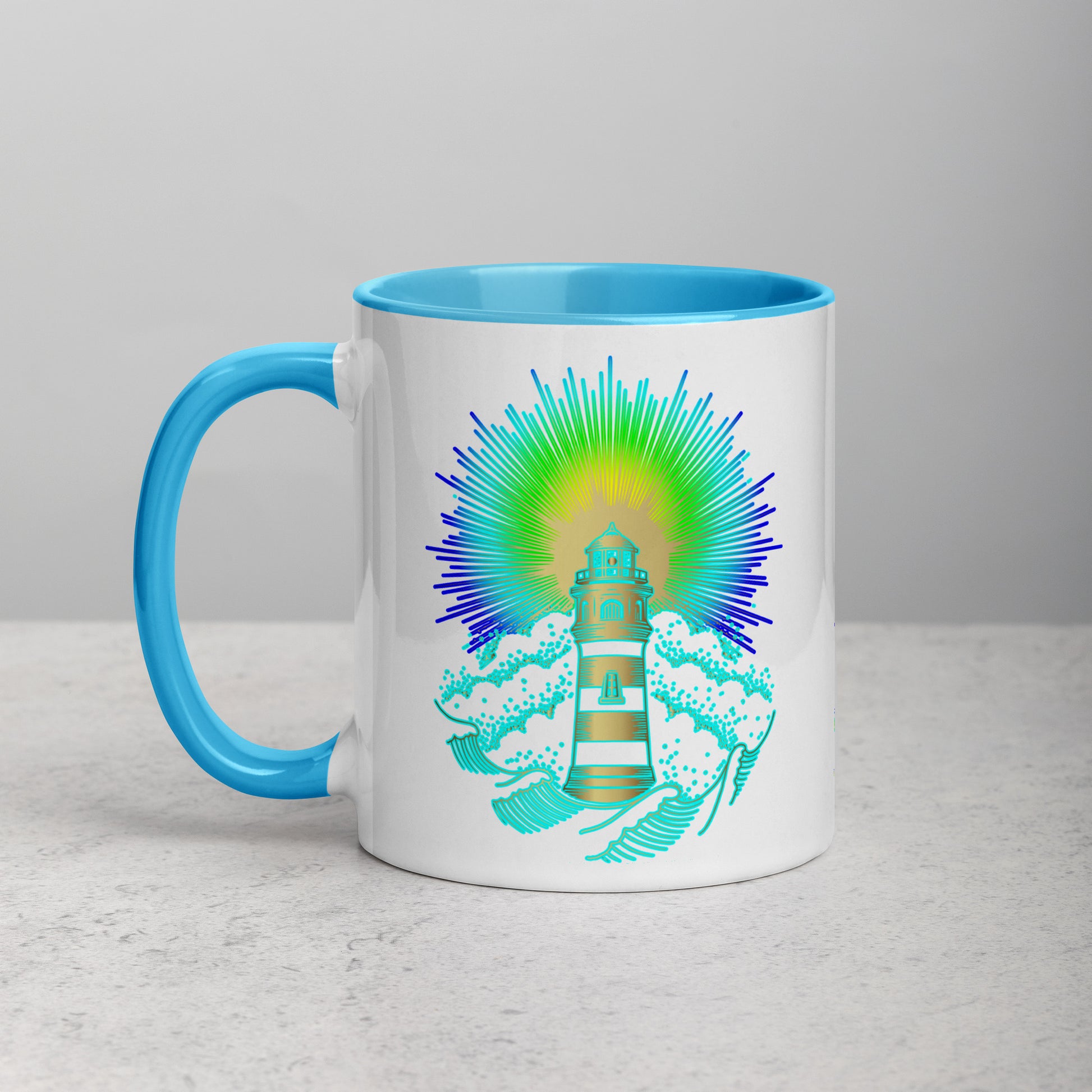 These ceramic mugs not only have a beautiful design on them, but also a colorful rim, handle, and inside, so the mug is bound to spice up your mug rack.
